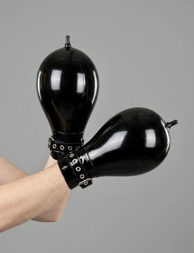Die aufblasbaren Bondage-Handschuhe in Birnenform bestehen aus einem Paar besonders runder, kurzer Handschuhe mit doppellagiger Konstruktion für eine zuverlässige Luftdichtigkeit. Durch das Aufpumpen lässt sich die Passform individuell anpassen und sorgt für ein festes, eng anliegendes Tragegefühl.