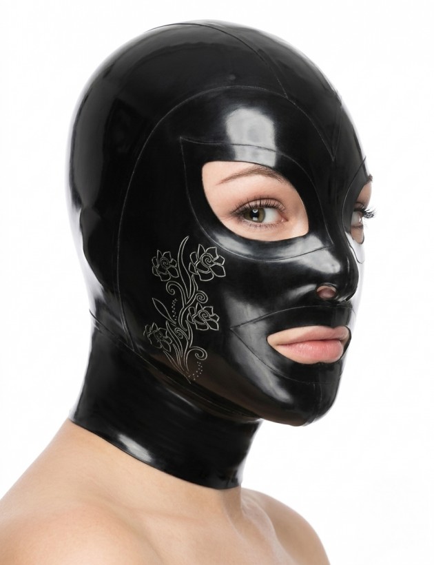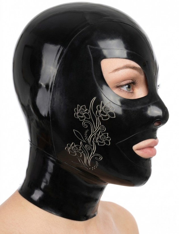 Latex Maske mit anatomischer Passform & Tattoo-Design.